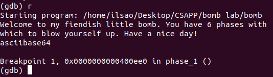 然後使用gdb打開程序,並給Phase_1打上斷點。
