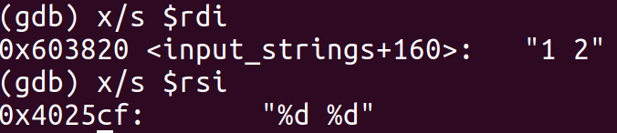 我們可以猜測sscanf就是用來提取用戶輸入。通過phase_1中展示的數據傳輸順序,查看%rdi與%rsi。