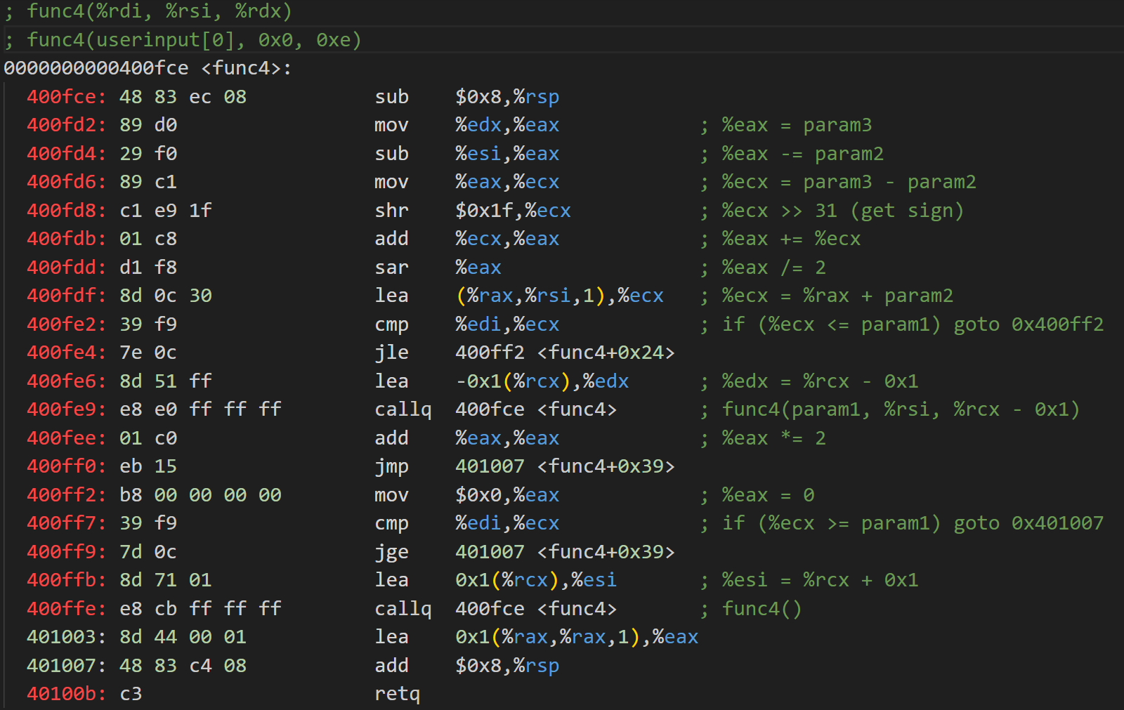 查看func4的反彙編代碼。