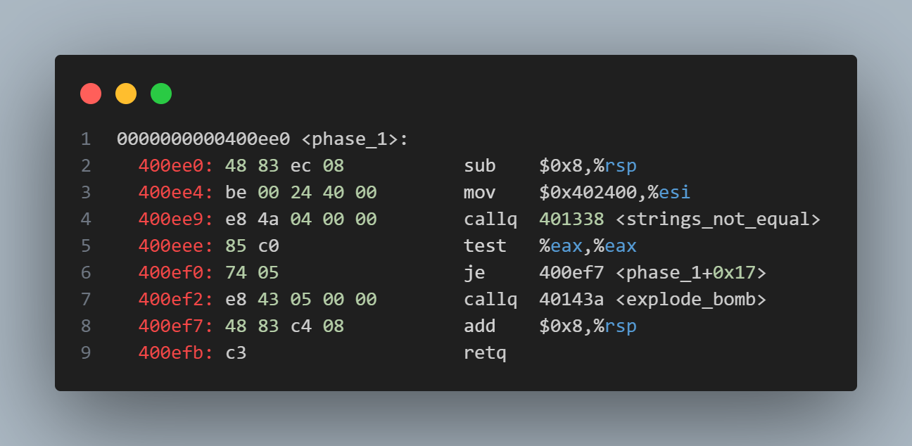 1 | objdump -d bomb > bomb.asm |
