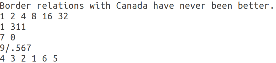 得到答案:1 2 4 8 16 32。